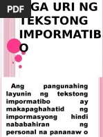 Ang pagsulat ng ilang halimbawa ng iba't ibang uri ng teksto at cohesive devices / ang paggamit ng cohesive device o kohesyong . Mahalaga sa pagbibigay ng malinaw at maayos na daloy